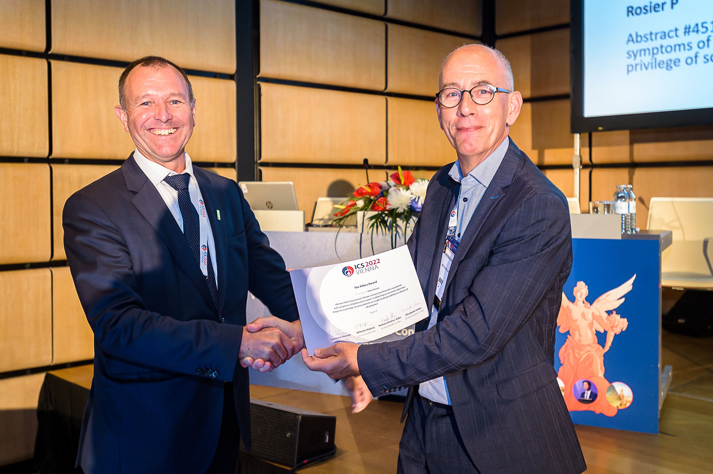 Peter Rosier heeft tijdens de ICS Wenen op 10 september 2022 de prijs “The Ethics Award” in ontvangst mogen nemen voor “Assessment of lower urinary tract function in patients with symptoms of dysfunction or pain: Is obtaining an accurate objective diagnosis a privilege of some patients or a right (with possibility to refuse) of all patients?”